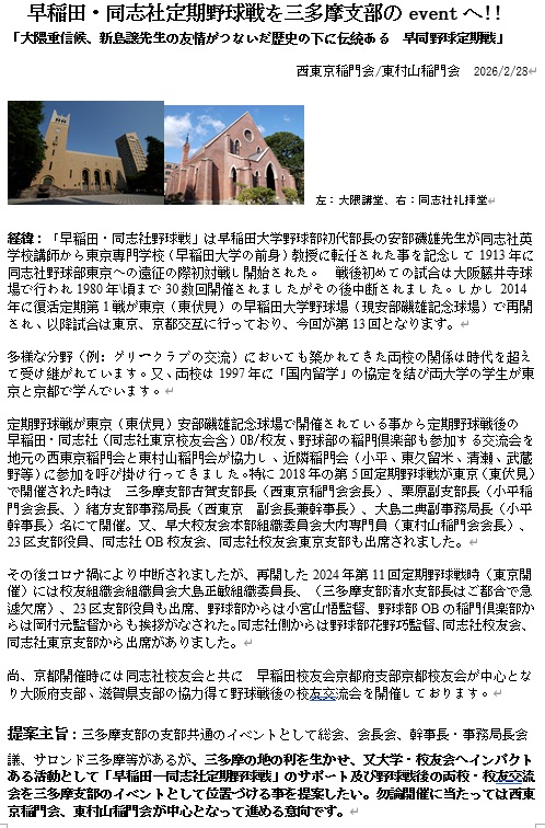 2026年早同定期野球戦後早同OB・校友交流会のご案内